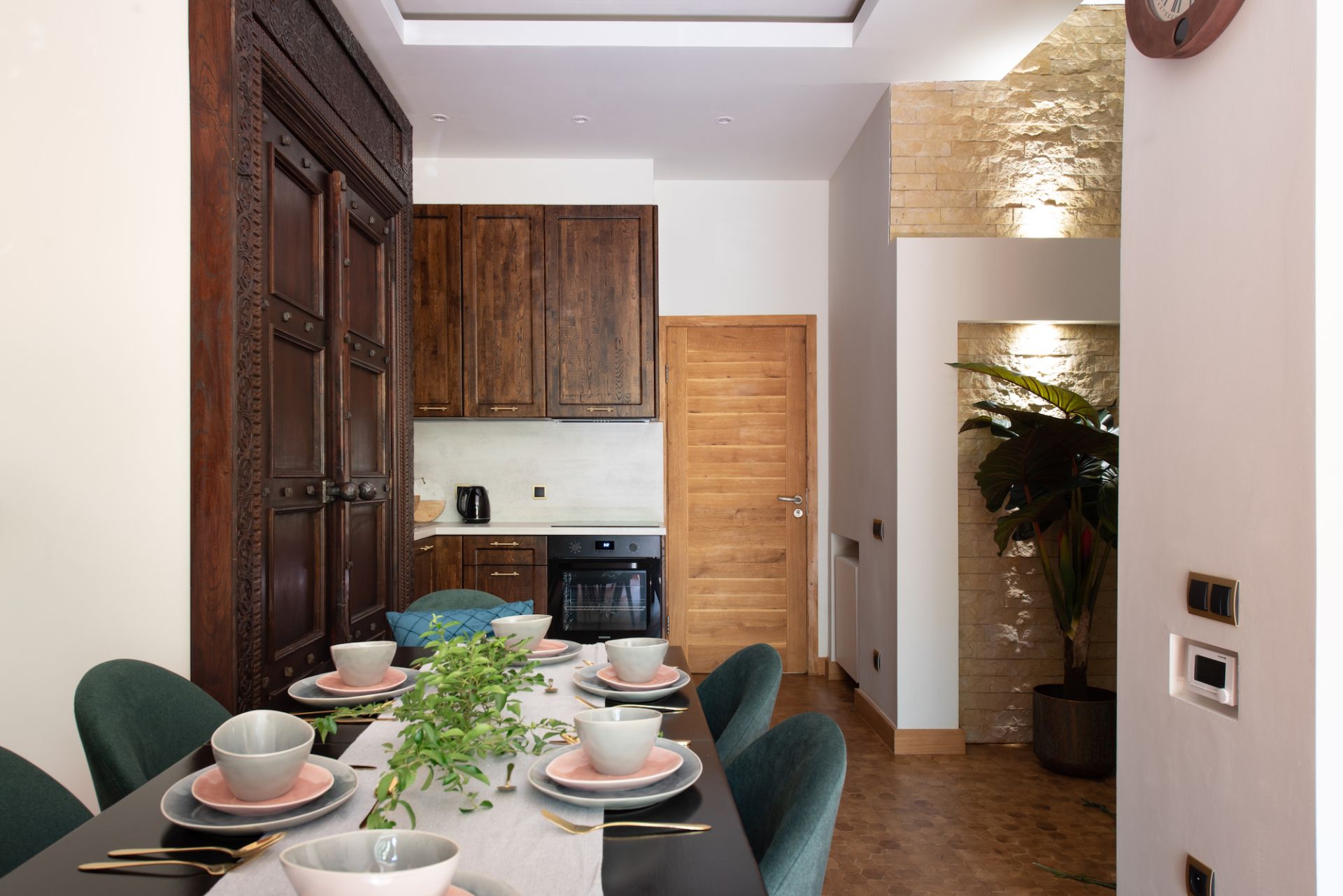 Klimatyzowany, przestronny, posiadający suchą saunę, dwie łazienki, znakomicie umeblowany i wyposażony w najwyższym standardzie czteropokojowy apartament z doskonałą lokalizacją, kilka minut pieszo od Starego Miasta.