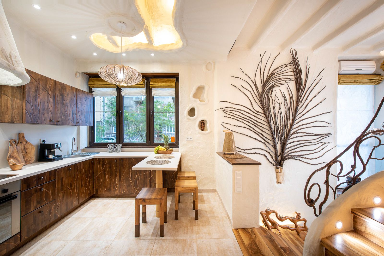 Ten 3-poziomowy apartament typu studio nie może się równać z niczym, co do tej pory widziałeś. Został przebudowany tak, aby wyglądał jak afrykańska wioska, z wyjątkiem tego, że posiada elementy luksusu ukryte poza zasięgiem wzroku. Klimatyzacja, wanna z hydromasażem w podłodze, piękne oświetlenie i wyszukane dekoracje sprawiły, że przestrzeń stała się hipnotyzującą kryjówką dla estetów. Nazwa – Red Desert Mirage naprawdę oddaje charakter mieszkania z naciskiem na pięknie prosty i ciepły afrykański styl. Ten apartament jest idealny dla pary, ale ma wystarczająco dużo miejsca, aby pomieścić 4 osoby.