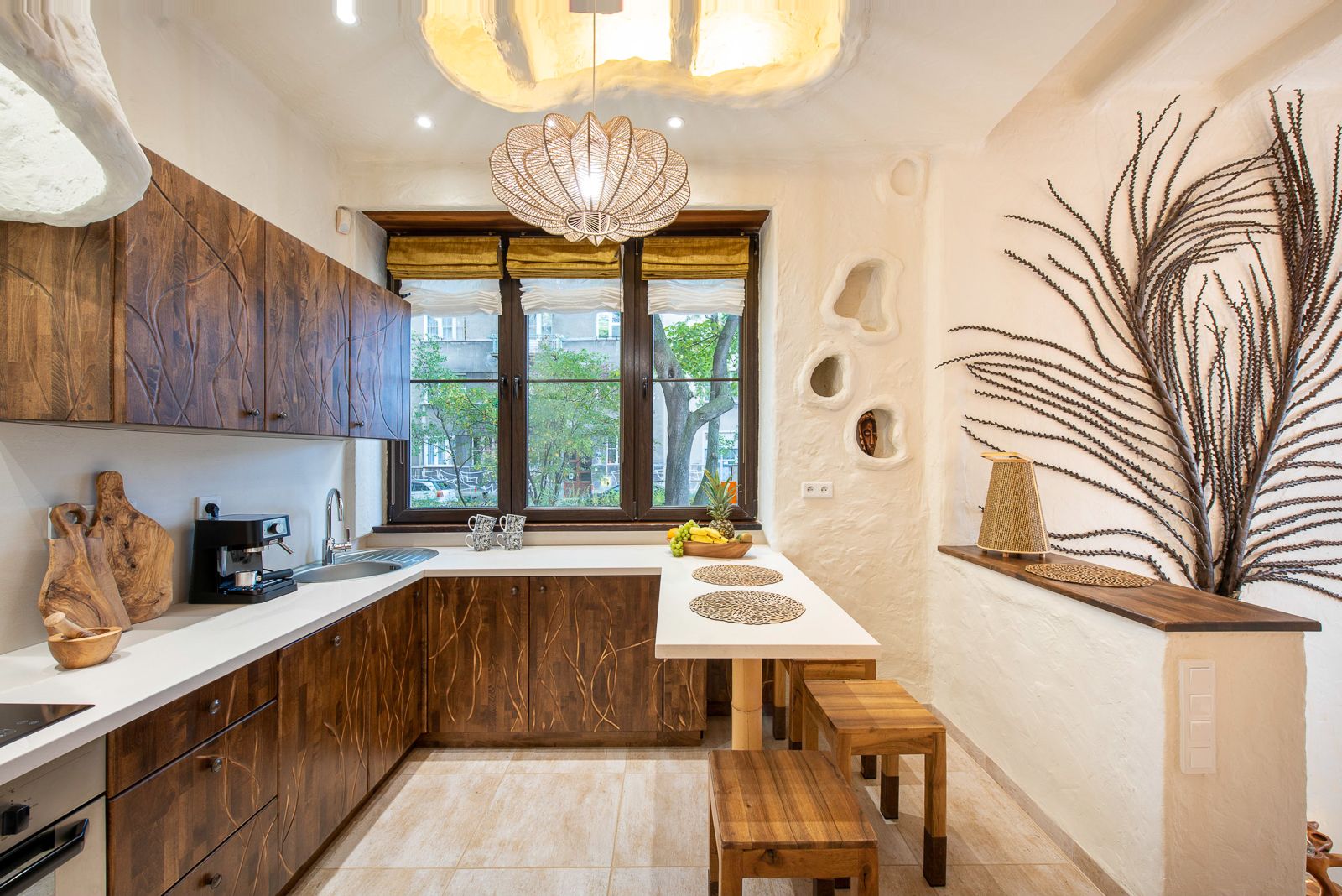 Kuchnia nie tylko wyposażona jest we wszystkie przydatne do gotowania sprzęty sprytnie wpisujące się w afrykański klimat, ale kusi również pięknym designem.